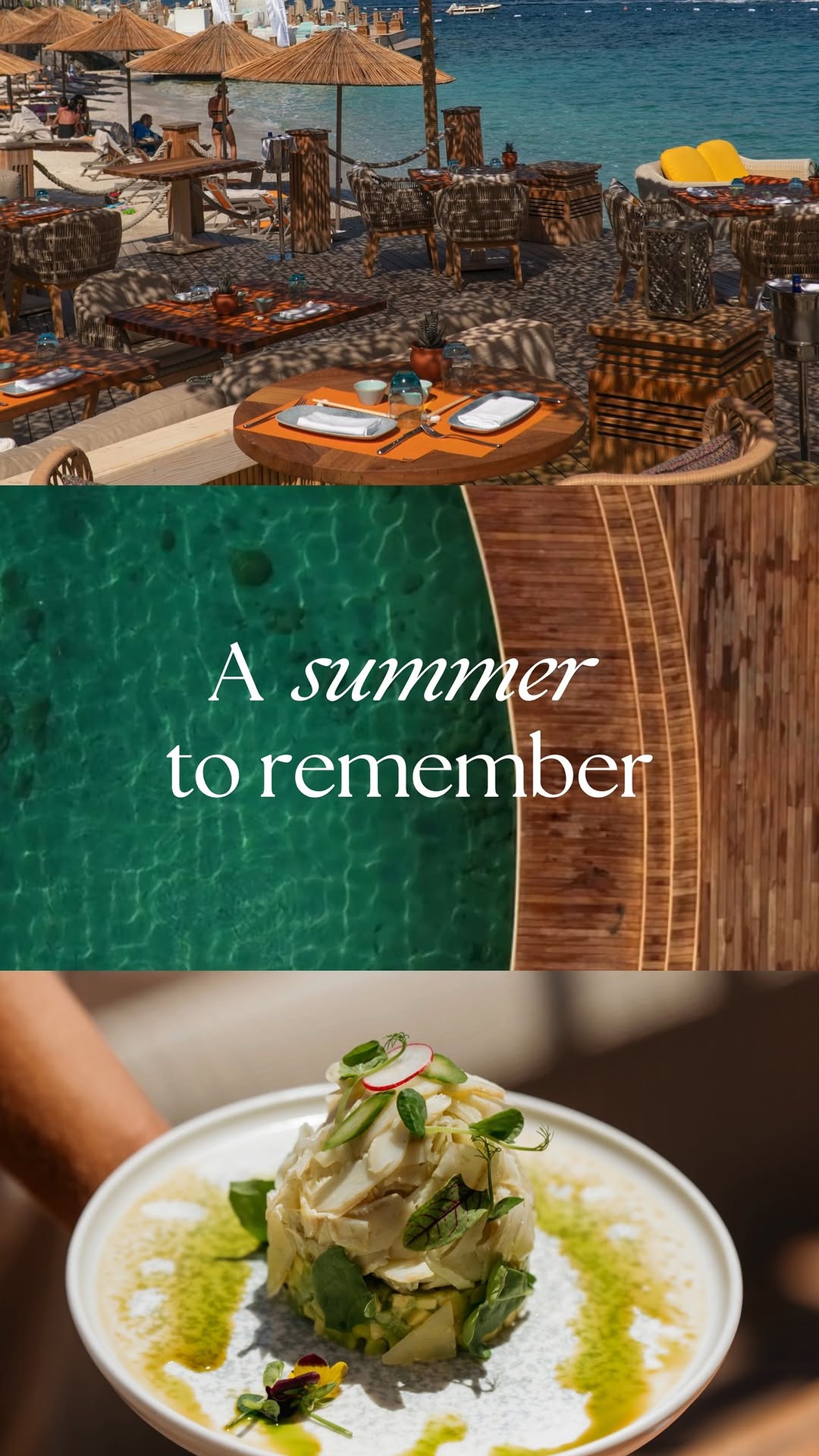 Exclusive beachside Pan-Asian restaurant and bar at Caresse resort with fusion cuisine, signature cocktails, and Aegean sunsets.